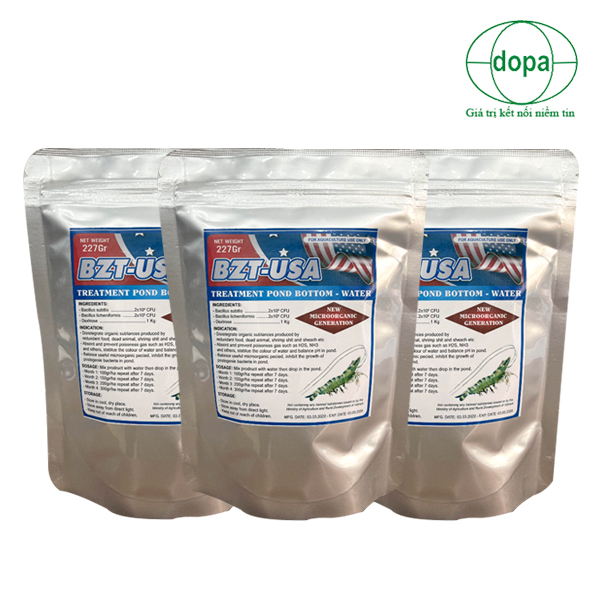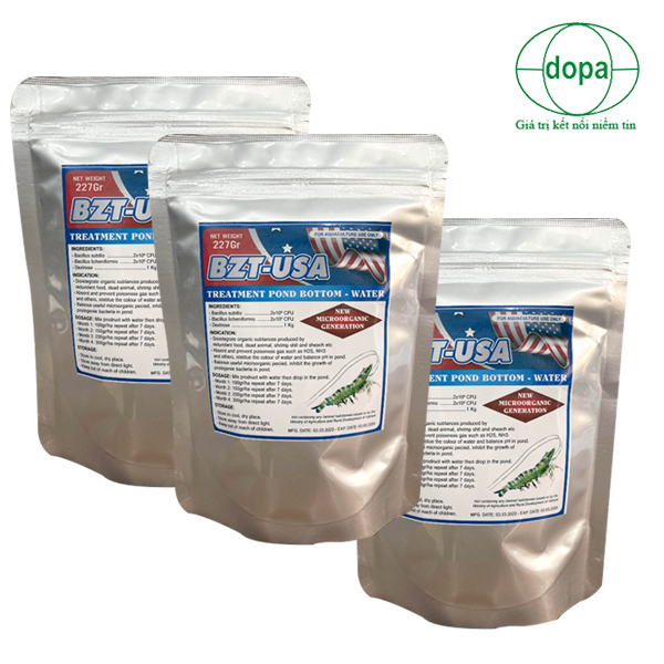 BZT-USA chế phẩm men vi sinh làm sạch đáy ao gây màu nước được phân phối bời Dopa.vn trên toàn quốc