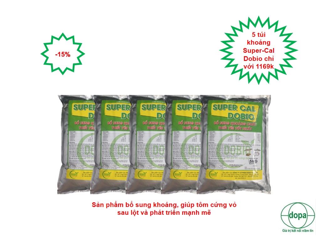 Sản phẩm SUPER CAL DOBIO hiện nay là sản phẩm bổ sung rất nhiều hoạt chất cần thiết cho sự phát triển của thủy sản, từ các loại vitamin, acid amin, đến khoáng chất. Liên tục được truyền tay nhau và coi là “thần dược” thỏa mãn điều kiện cần và đủ để thủy hải sản sinh trưởng. CÔNG TY CP DOBIO VIỆT NAM sản xuất và phân phối sản phẩm SUPER CAL DOBIO dưới dạng túi zip đóng gói khối lượng tịnh 5kg.