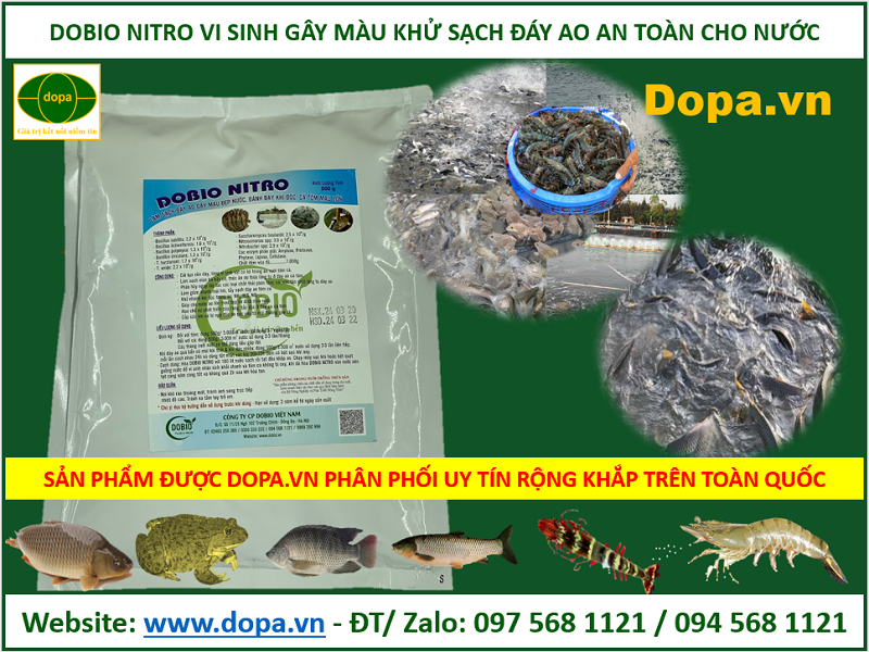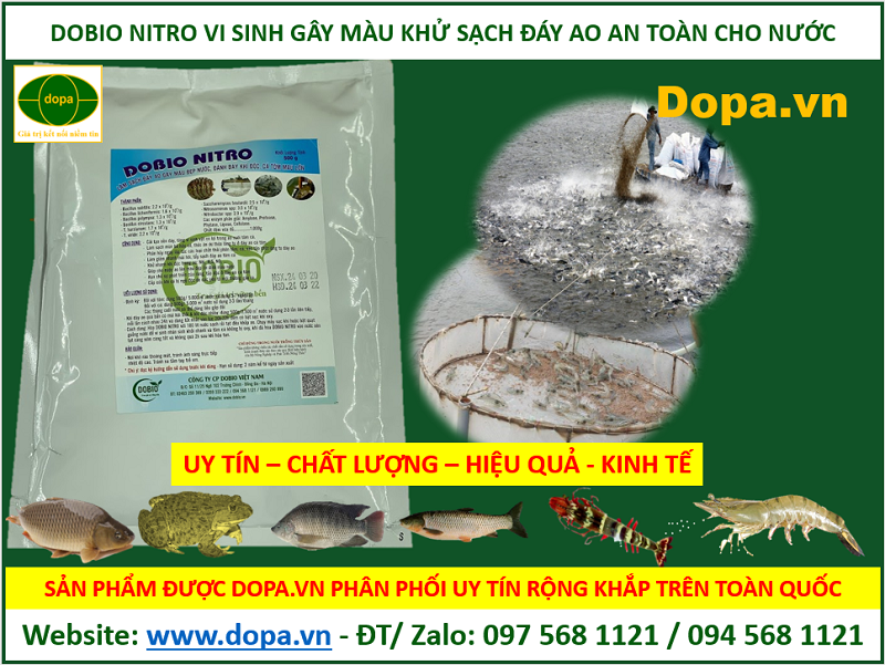Sản phẩm DOBIO NITRO chế phẩm men vi sinh xử lý đáy, khử làm sạch gây màu nước ao nuôi cũng được Dopa.vn website: www.thuysandopa.vn là địa chỉ công ty đại lý cung cấp, phân phối bán uy tín chất lượng hiệu quả với giá tốt nhất trên toàn quốc.