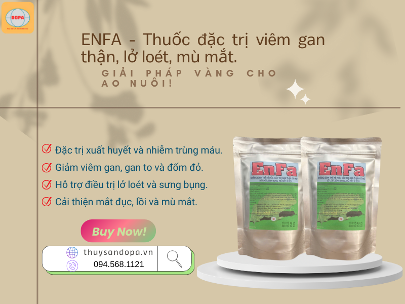 Trộn 3–5g ENFA với 1kg thức ăn. Cho ăn liên tục trong 7 ngày.
