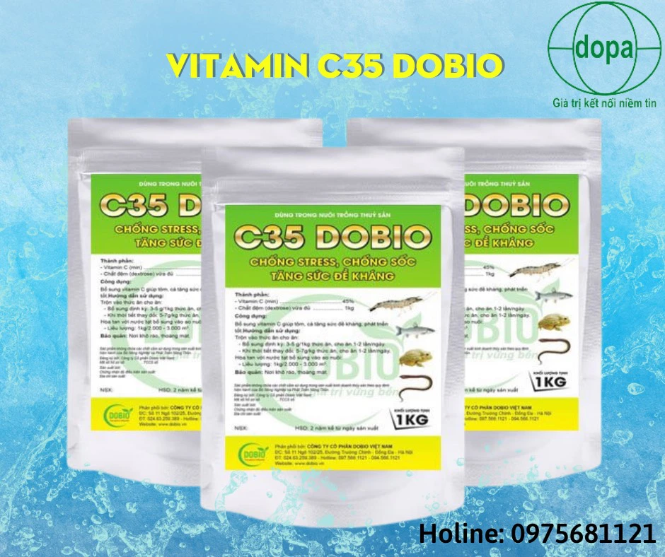Nên bổ sung Vitamin C35 định kỳ từ 3 đến 5g/1kg thức ăn hàng ngày cho tôm cá và cho chúng ăn 1-2 lần/ngày.