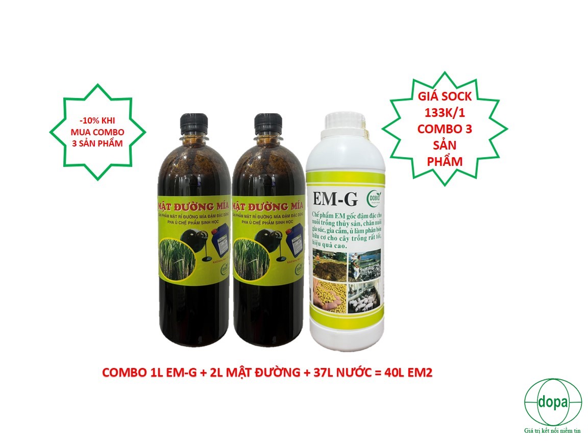 Nhân/ Nuôi vi sinh (Tạo chế phẩm EM2): 1 lít chế phẩm EM1 + 2 lít mật rỉ đường + 37 lít nước = 40 lít EM2 (ủ 5-7 ngày).