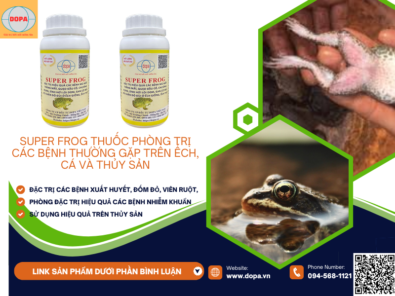 - Việc sử dụng SUPER FROG giúp kiểm soát và điều trị hiệu quả các bệnh nhiễm khuẩn nguy hiểm trên ếch nuôi.
