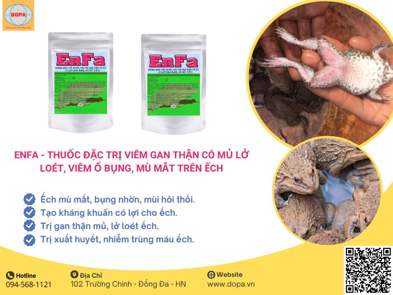 Dùng 3-5g ENFA trên 1kg thức ăn, cho ăn liên tục 7 ngày.