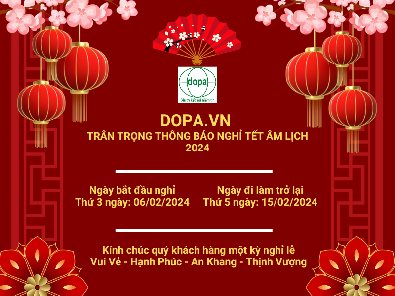 Thủy sản DOPA xin thông báo lịch nghỉ Tết nguyên đán Giáp Thìn 2024 như sau: