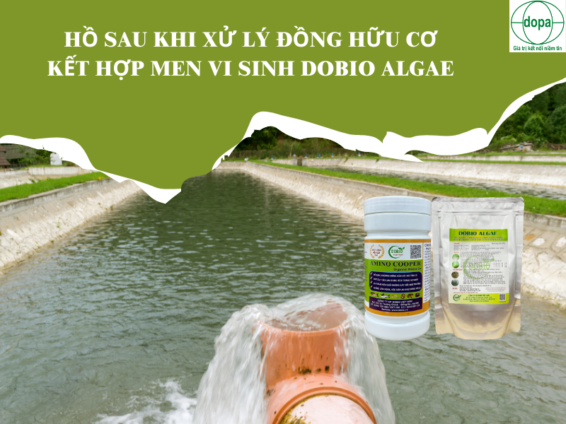 - Sử dụng men vi sinh: Sau khi đánh Đồng Hữu Cơ sau 3 hôm bắt đầu sử dụng men vi sinh vào ao nuôi theo liều lượng 1 gói DOBIO ALGAE 500g dùng cho 5,000m3, đánh liên tục 5-7 ngày đồng thời bật sục khí oxy trong hồ để vi sinh phát triển tốt hơn.